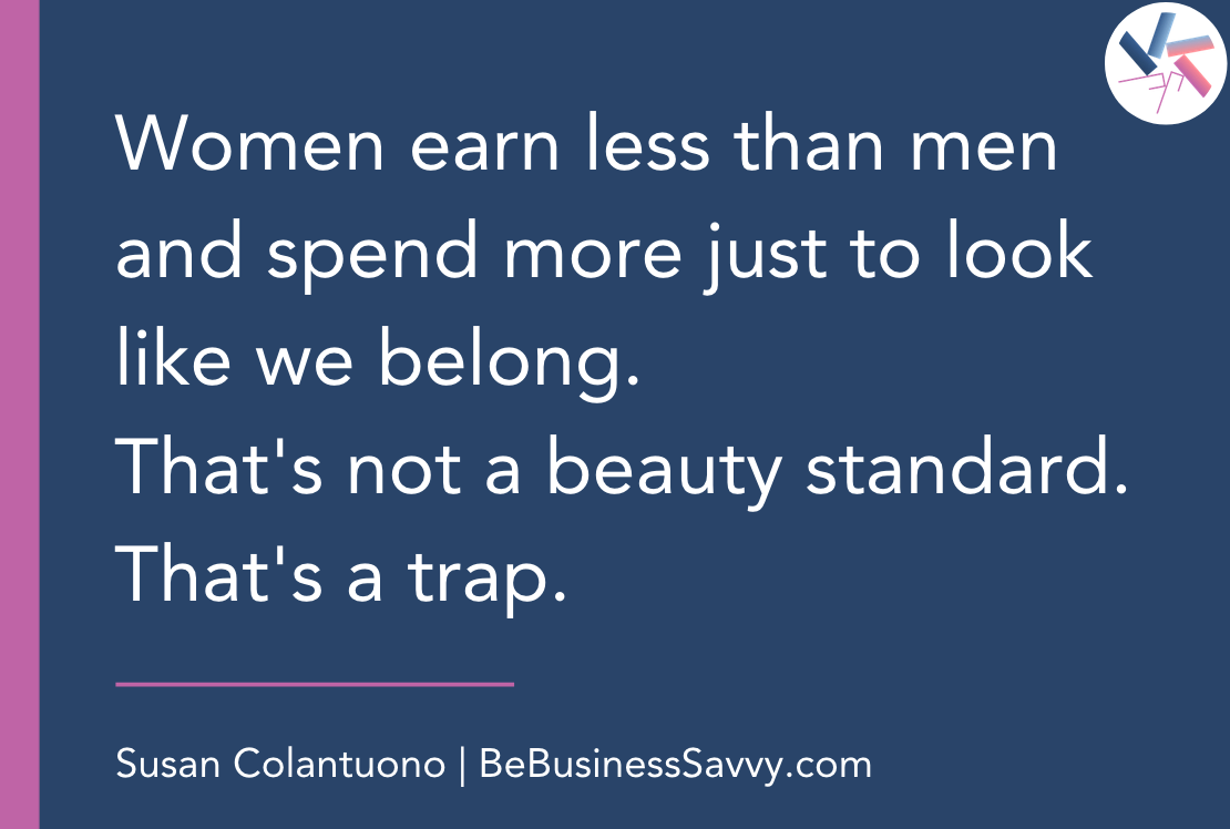 It takes a real phenomenon, i.e. the documented, measurable pressure on women to spend more on their appearance to be taken seriously at work, and reframes it as aspiration. As empowerment. As confidence. As peak professionalism.