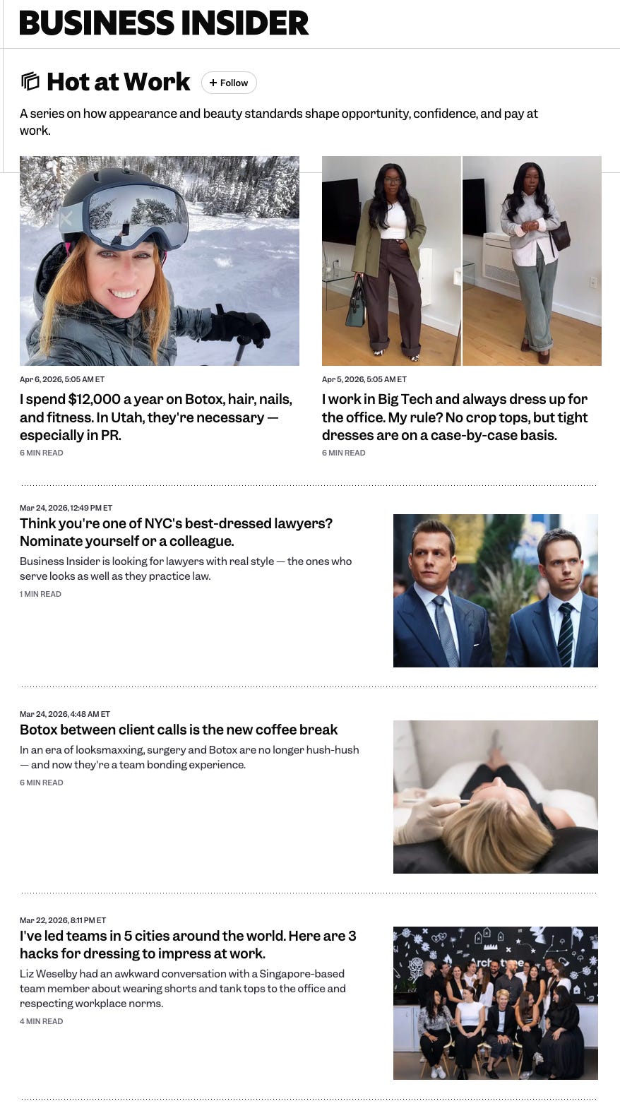 If you read my recent piece on the glam tax (the double bind of earning less while being expected to spend more just to participate in professional life) “Hot at Work” is that argument made visible in real time. Business Insider didn’t set out to illustrate my point. But here we are.
