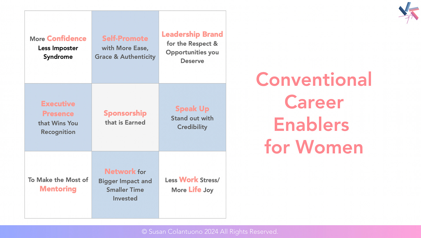 I call these “Career Enablers” because if we are “good enough” at these, we face fewer career hurdles and barriers.