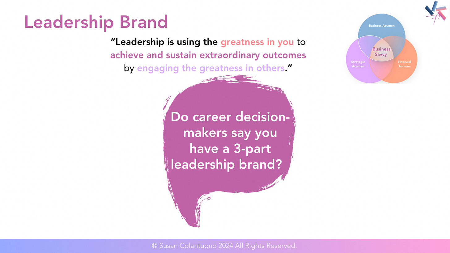 You don’t have to be rising to CEO for your leadership brand to matter - especially your Business Savvy!