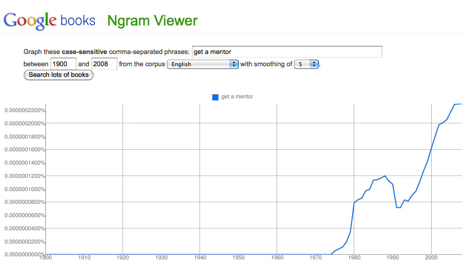 What you might not realize (and can see from the illustration below) is that advice to “get a mentor” first appeared in books in the mid to late-1970s – the time when women first began entering the workforce with the expectation of building careers.